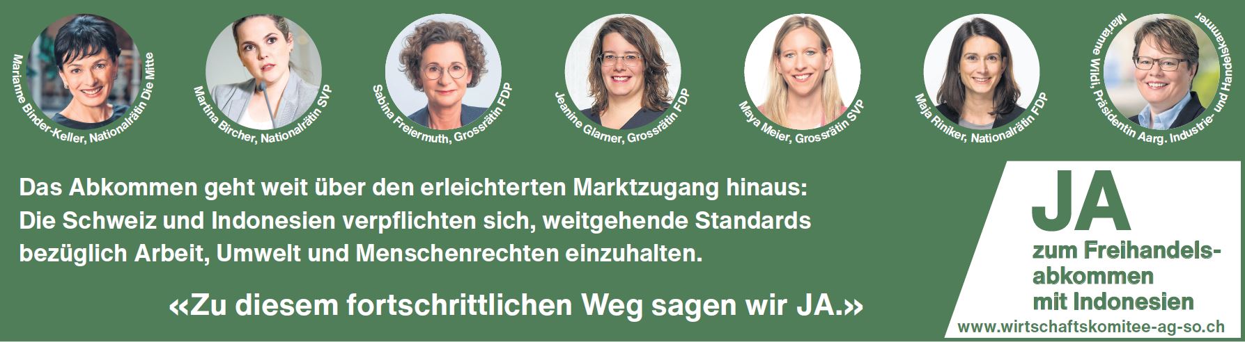 Dank der gestrigen Zustimmung der Stimmbevölkerung und dem deutlichen JA in den Kantonen Aargau (56,5%) und Solothurn (55%) ist der Weg für das Freihandelsabkommen mit Indonesien frei. Die Schweiz setzt damit einen wichtigen Meilenstein für die Schweizer Aussenwirtschaft und für mehr Nachhaltigkeit im internationalen Handel.